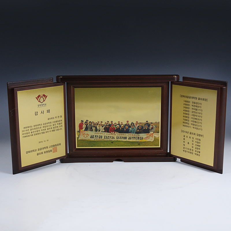 경희대에서 주문하여 제작한 접이 형식의 감사패 입니다.