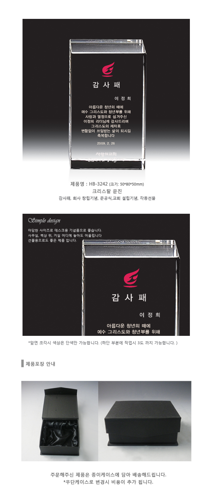 목사안수패 크리스탈 시계 시상식트로피 블랙 크리스탈 상패 순금 상패