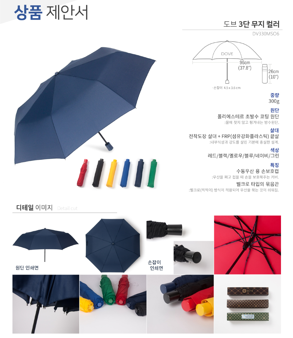 • 상품명 도브 3단우산 폰지무지컬러