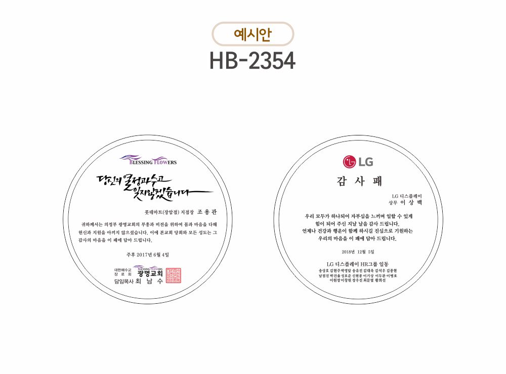⊙ 주용도: 감사패 | 표창패 | 기념패 | 전역패 | 결혼패 | 효행패