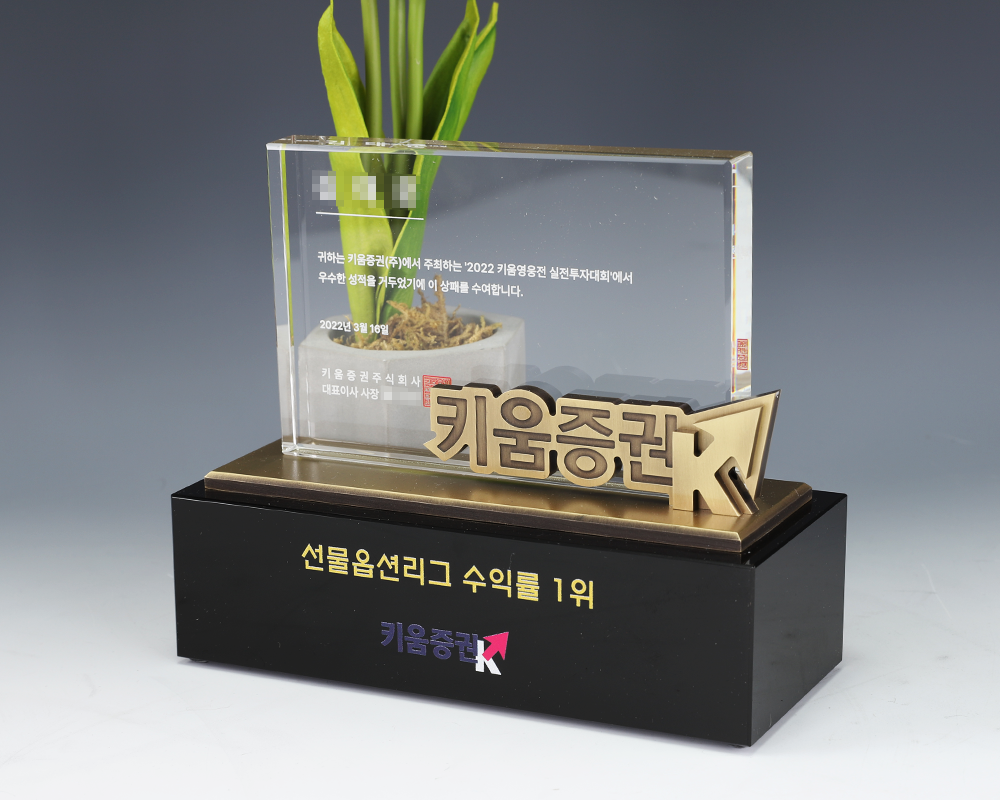 키움증권 트로피 주문 제작 제품입니다.