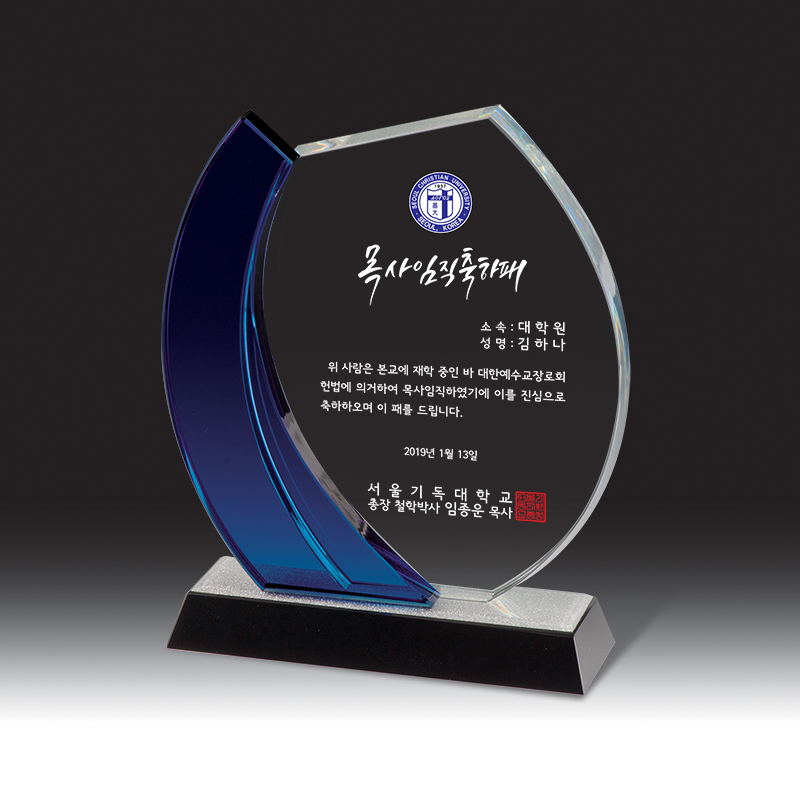 목사안수패 크리스탈 시계 시상식트로피 블랙 크리스탈 상패 순금 상패
