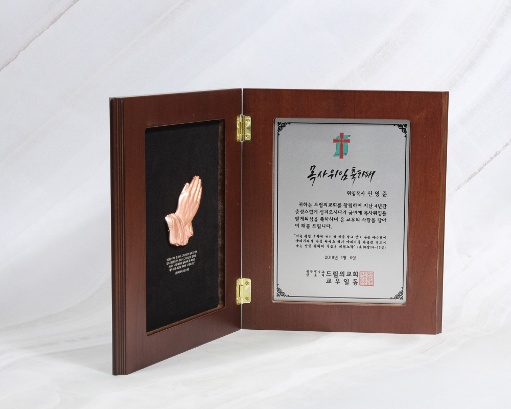 오랫동안 간직하고 싶은 추억을 감사의 마음을 담아 정성스럽게 제작합니다. ★★★ 기도손 동색은 단종되어 금색으로 변경되어 나갑니다. ★★★