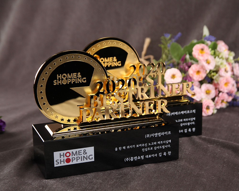 홈앤쇼핑 제작 트로피 주문 제작 제품입니다.