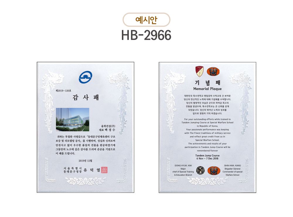 ⊙ 주용도: 감사패 | 표창패 | 기념패 | 전역패 | 결혼패 | 효행패