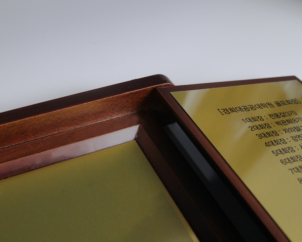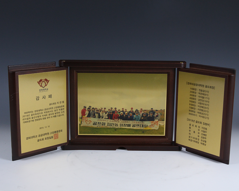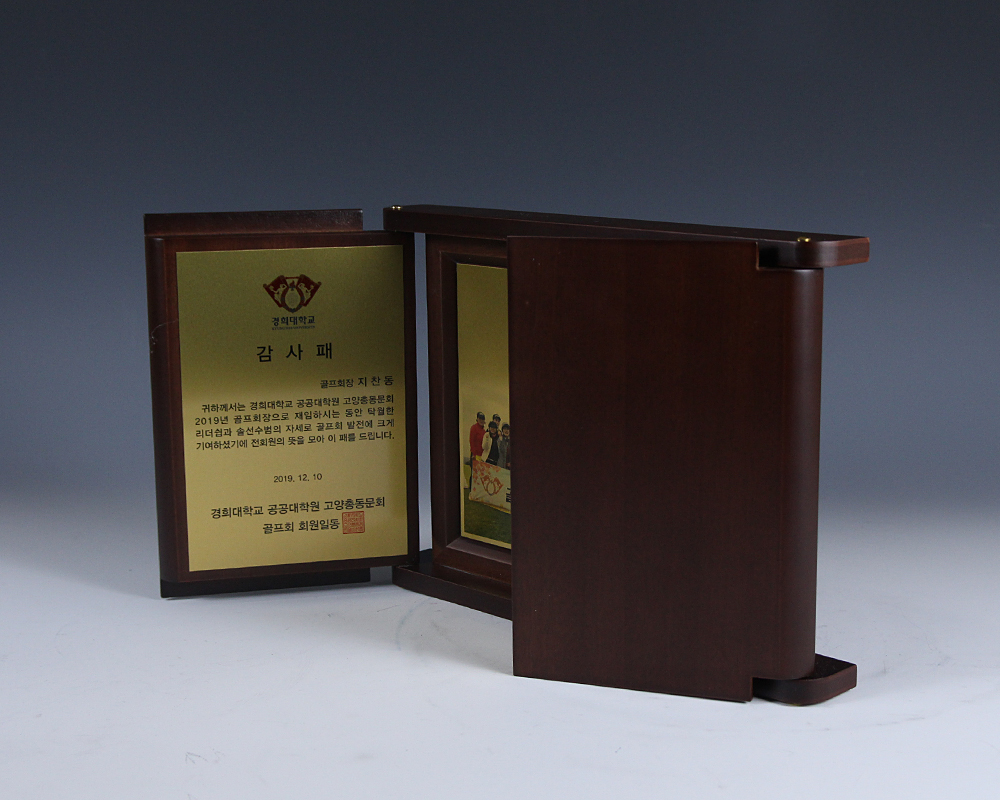 경희대에서 주문하여 제작한 접이 형식의 감사패 입니다.