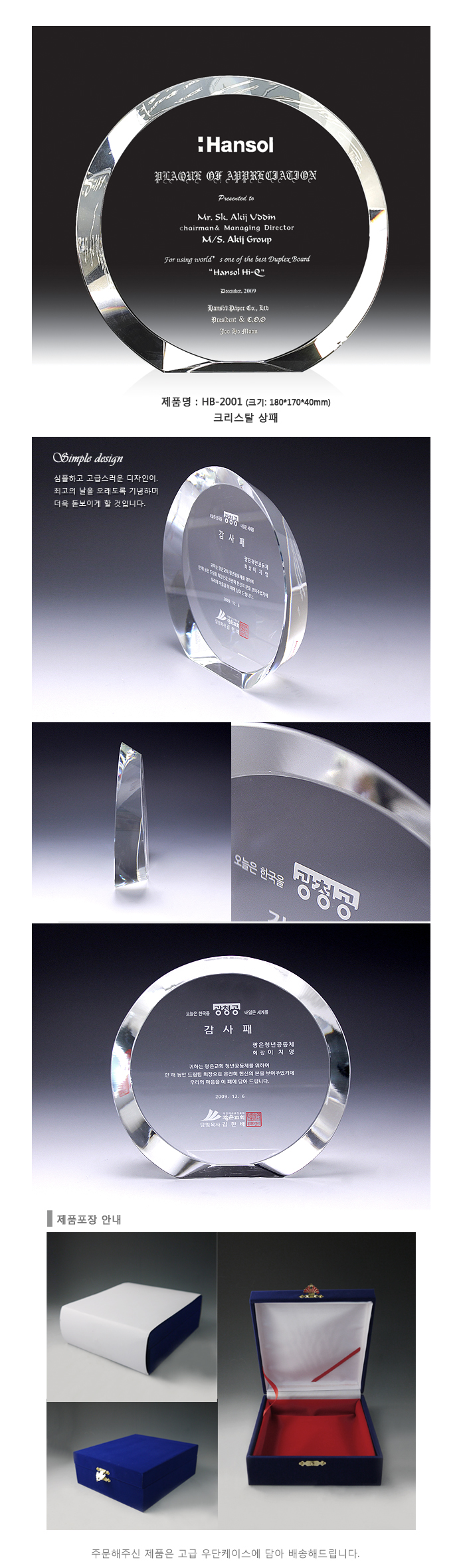 크리스탈 상패 HB-2001