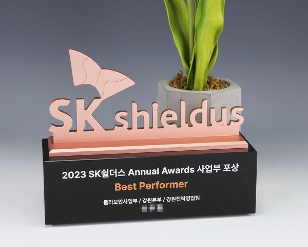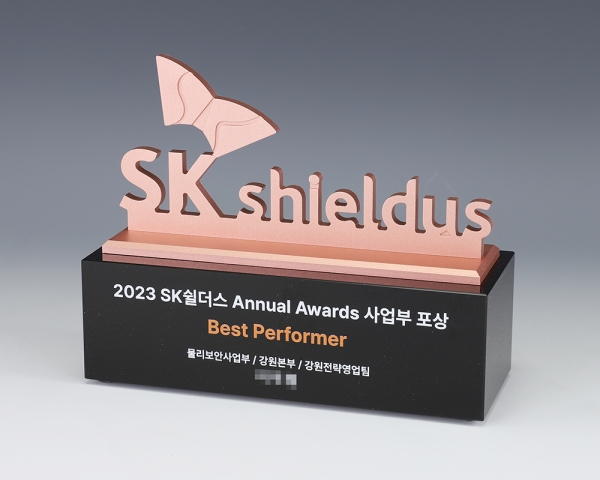 SK쉴더스 트로피 주문 제작 제품입니다.