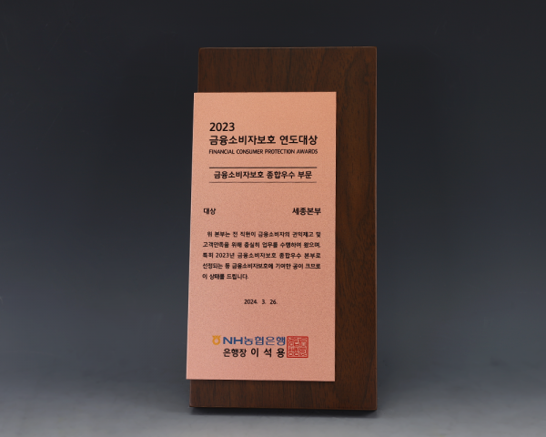 농협은행 금융소비자보호 연도대상 주문 제작 제품입니다.